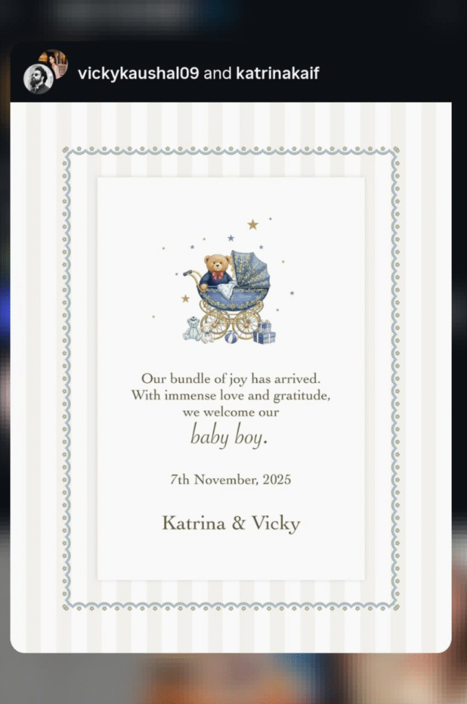 It’s official, Vicky Kaushal and Katrina Kaif are blessed with a little boy. The announcement was made via their social media accounts on November 7, 2025, confirming this great news. The couple wrote in a statement that their infant is doing well and they are healthy. They also expressed gratitude for the love that comes from well-wishers and fans.