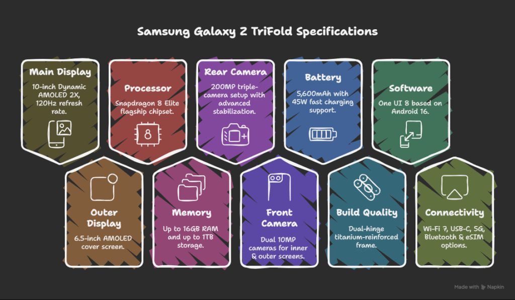 Samsung has packed the Galaxy Z TriFold with a range of enhancements designed to deliver both functional and experiential value. From its large expandable display to its flagship performance hardware, each feature contributes to making it a powerful all-in-one mobile device.